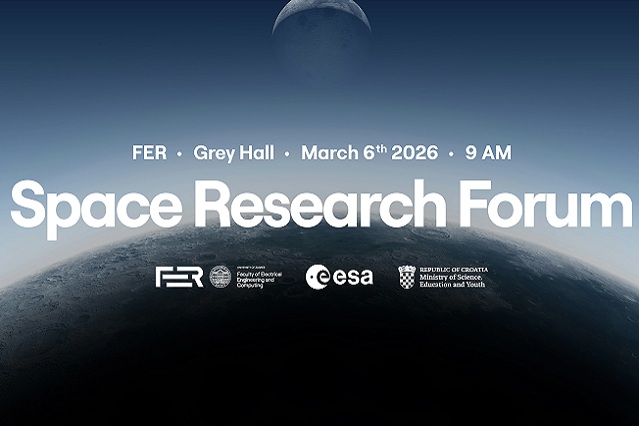 The Ministry of Science, Education and Youth, in collaboration with the European Space Agency (ESA) and the University of Zagreb, Faculty of Electrical Engineering and Computing, is organizing the Space Research Forum, which will take place on 6 March 2026, from 9:00 to 15:00 in the Grey Hall of the Faculty of Electrical Engineering and Computing, at Vukovarska 39, Zagreb.