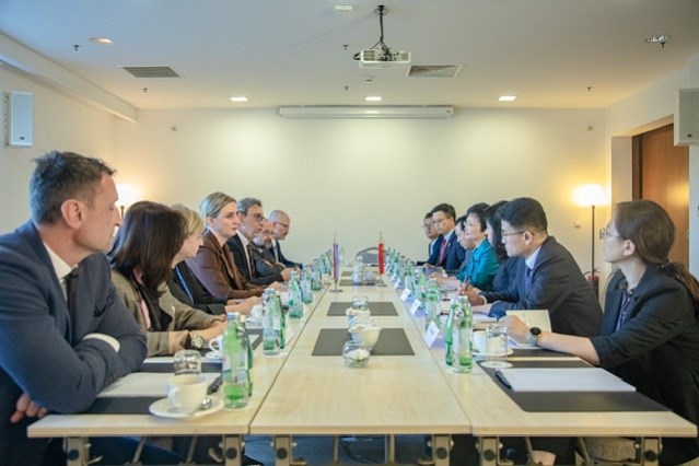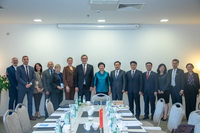 U sklopu održavanja Glavne skupštine WorldSkills organizacije u Dubrovniku, ministar Fuchs održao je i bilateralni sastanak s ministricom ljudskih resursa i socijalne sigurnosti Narodne Republike Kine gđom Wang Xiaoping i njezinim suradnicima.